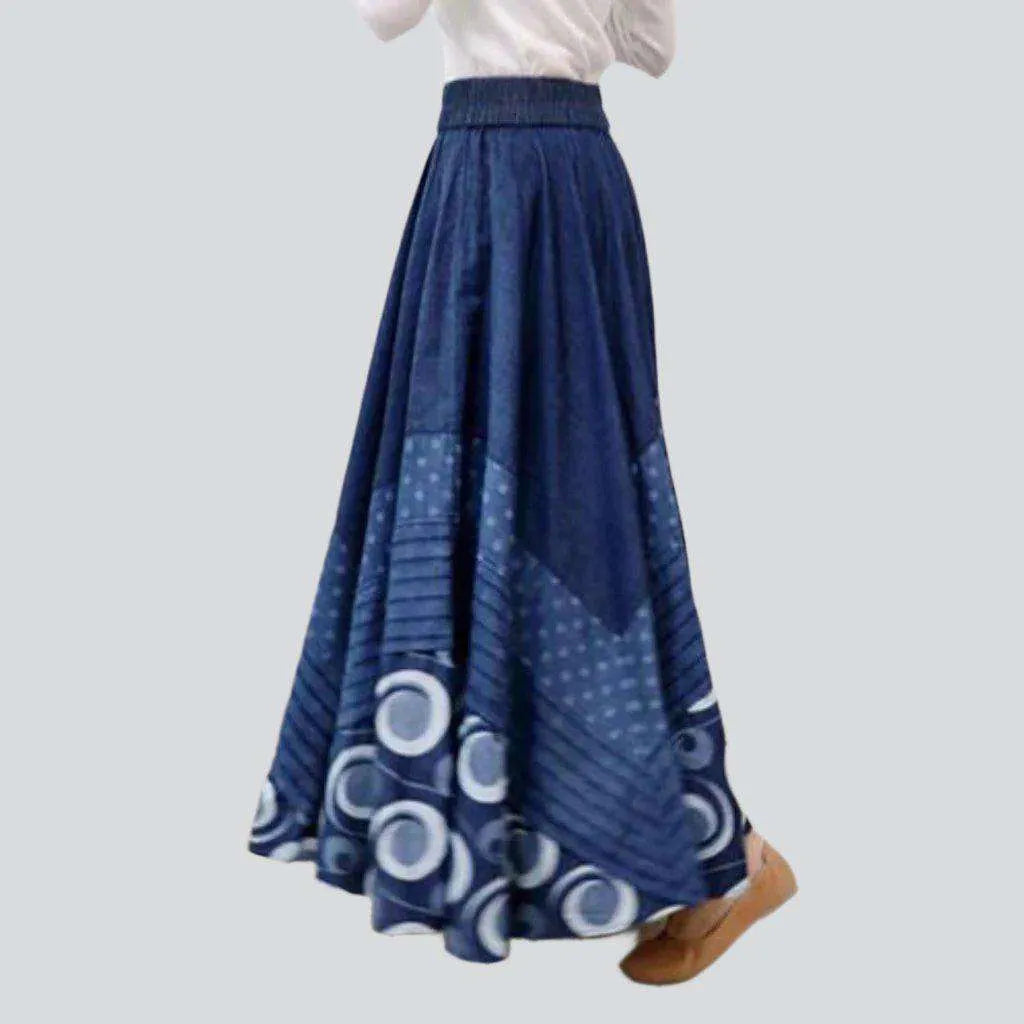 This long denim skirt is tailor-made for fashion-forward individuals with a love for all things boho. Its dark hue and unique embroidery add an artistic touch to classic denim, while the rubber closure ensures a perfect fit.
