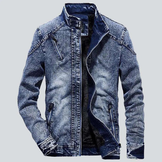 Slim fit vintage distressed men's denim jacket