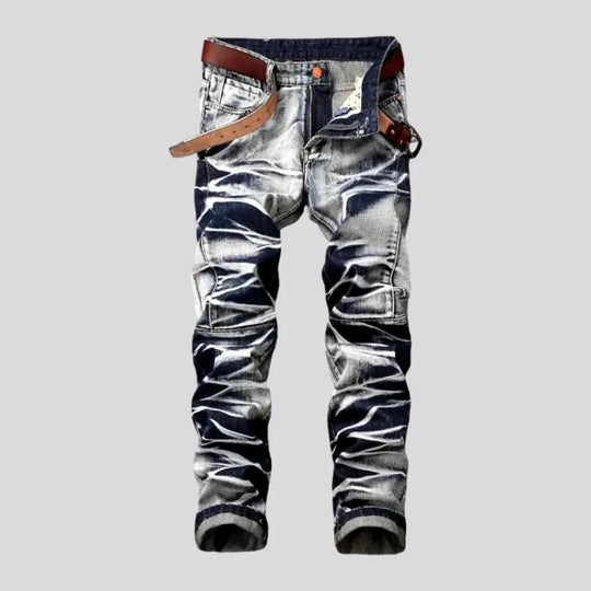 Wrinkled patchwork grey men's jeans