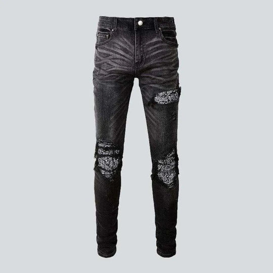 Crystal-embellished patchwork men's jeans