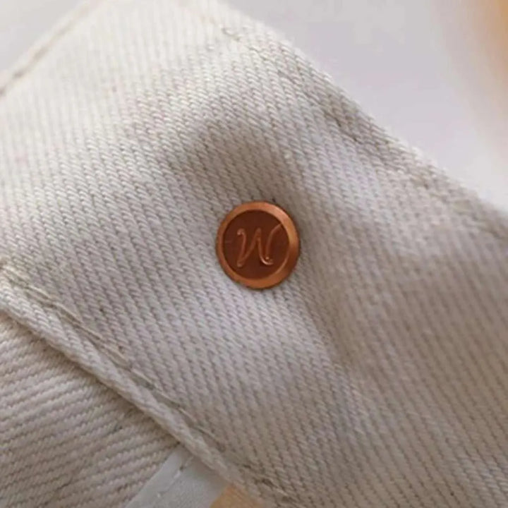 Experience the pinnacle of luxury and mode with our classic, monochrome, straight, ivory, mid-waist jeans. Crafted with the finest quality materials, these jeans are patterned to provide ultimate comfort and a timeless aesthetic.